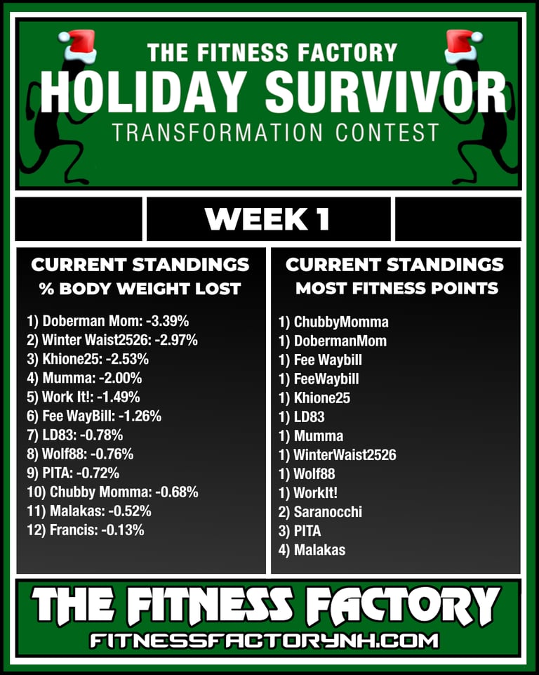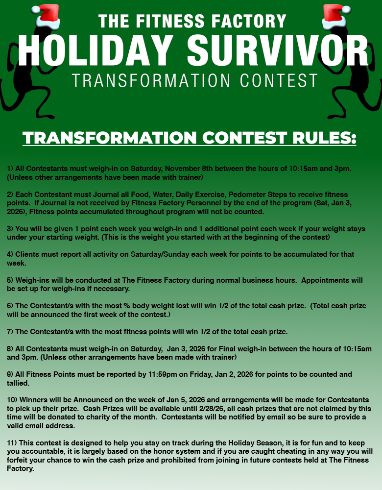 This form will be available to Holiday Survivor Transformation Contest participants Saturday morning until Sunday 7PM EST from Nov. 8th to Jan. 3rd.